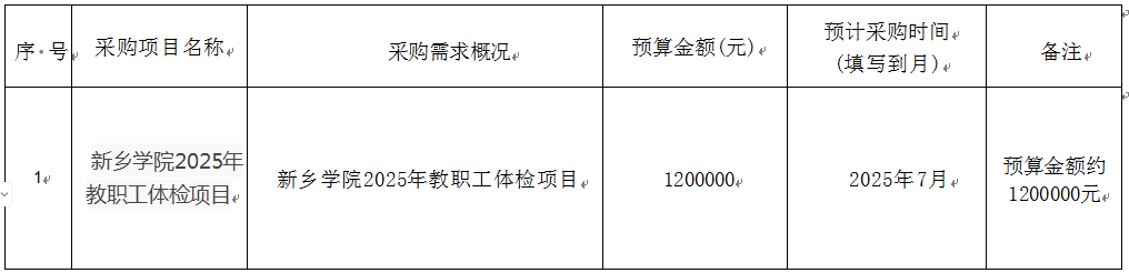 为便于供应商及时了解政府采购信息,根据《河南省财政厅关于开展政府采购意向公开工作的通知》(豫财购〔2020〕8 号) 等有关规定,现将永利集团2025年教职工体检项目2025年6至7月政府采购意向。